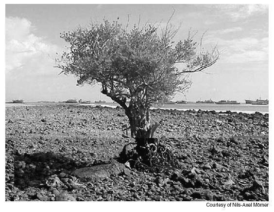 This tree, which I showed in the documentary, is interesting. This is a prison island, and when people left the island, from the '50s, it was a marker for them, when they saw this tree alone out there, they said, “Ah, freedom!” They were allowed back. And there have been writings and talks about this. I knew that this tree was in that terrible position already in the 1950s. So the slightest rise, and it would have been gone. I used it in my writings and for television. You know what happened? There came an Australian sea-level team, which was for the IPCC and against me. Then the students pulled down the tree by hand! They destroyed the evidence. What kind of people are those? And we came to launch this film, “Doomsday Called Off,” right after, and the tree was still green. And I heard from the locals that they had seen the people who had pulled it down. So I put it up again, by hand, and made my TV program. I haven't told anybody else, but this was the story.